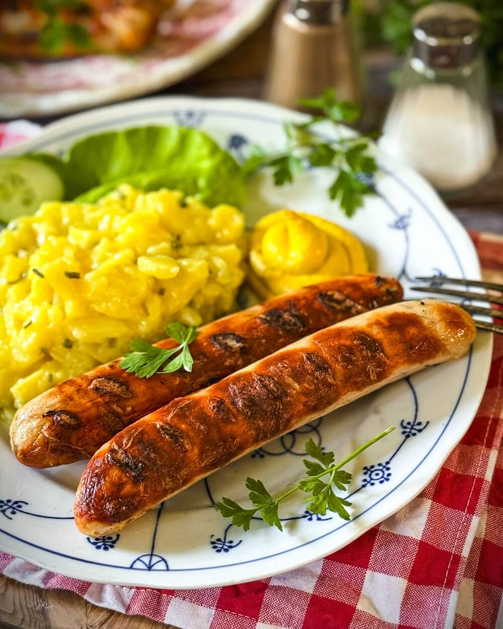 Wenn’s etwas mehr sein soll, gibt es einen Kartoffelsalat mit Majo oder Sauerkraut und Brezen zu den Bratwürsten dazu. Aber die Wahl der Beilagen ist natürlich Geschmackssache.