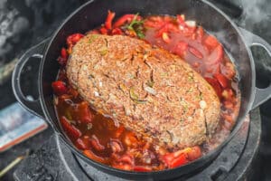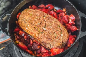 In der Mitte bleibt er zart und saftig – besonders wenn man ihn wie bei uns mit einer würzigen Soße  serviert. Ich persönlich mag es am liebsten, wenn die Soße richtig kräftig ist und viel Gemüse mitgeschmort wird.