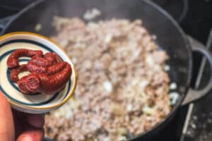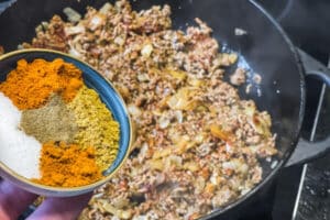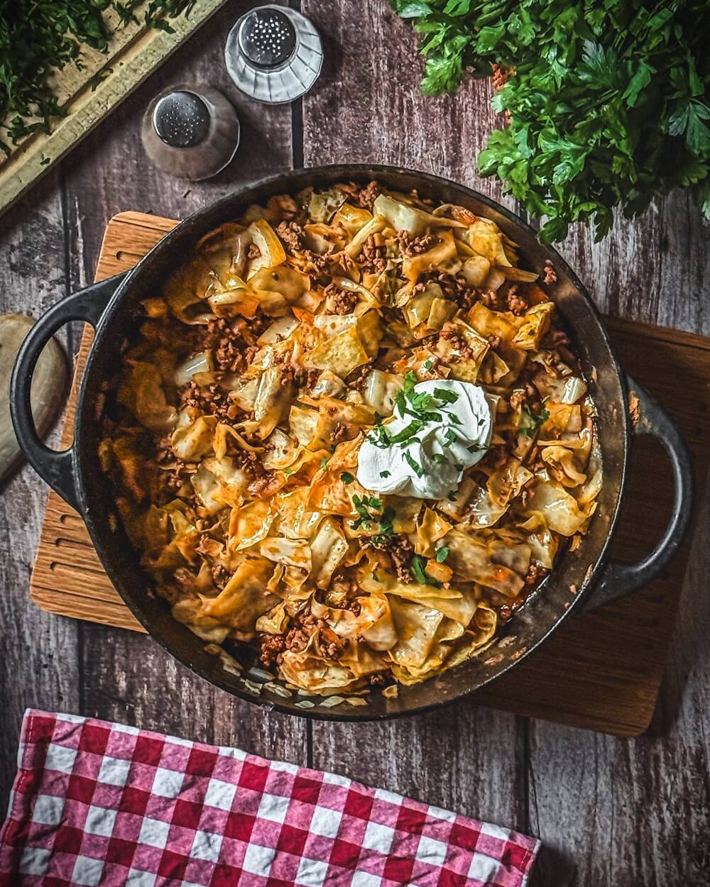 Ein schwerer Pfannenboden verhindert, dass der Spitzkohl oder das Hackfleisch am Boden anbrennen. Außerdem lohnt es sich, die Gewürze schon vorab in einer kleinen Schüssel bereitzustellen – so geht alles schneller von der Hand. Ich mache das oft so, wenn ich gleichzeitig Fotos für den Blog vorbereite.