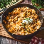 Die Spitzkohl Hackfleisch Pfanne ist eine vielseitige Rezeptidee, die vom einfachen Familienessen bis zum gemütlichen Abend im Herbst passt. Durch die Kombination von Gemüse, würzigem Hackfleisch und einer Prise Muskat entsteht ein kleiner Gaumenschmaus, der direkt ins kulinarische Herz trifft.