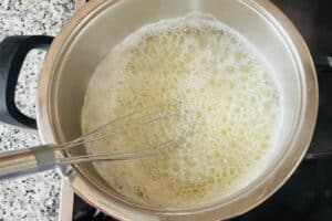 - Wasser mit der Prise Salz und Butter in einem Topf zum Kochen bringen.